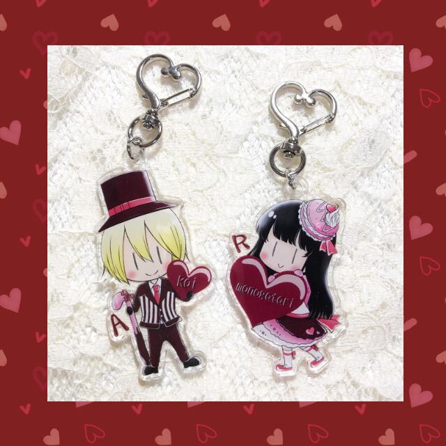 連載中の漫画「画面越しの彼と平凡な私の恋物語」のアクリルキーホルダー(蒼)です。 蒼1点の価格です。 70mm×70mmサイズ。 先端パーツは、ハート型になってます。